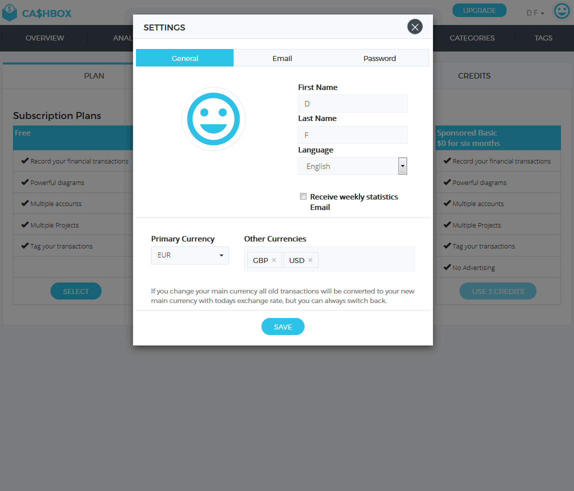 In cashbox you enter all your expenses and income to keep track of them. At the end of the month you see exactly how much money you spent and on what.